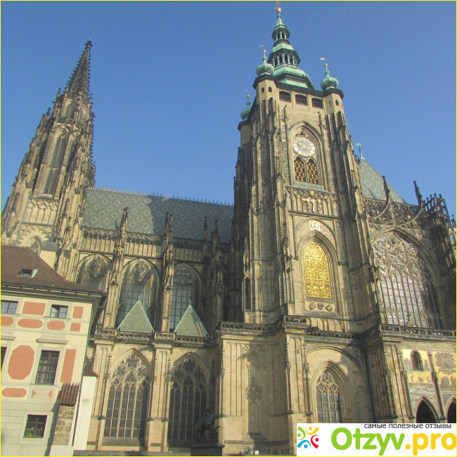Собор Святого Вита – один из крупнейших готических соборов – занимает так много места и так плотно окружен постройками, что невозможно сделать фотографию, чтобы он помещался на ней целиком. Его надо обходить и рассматривать с разных сторон. Это можно сделать бесплатно. Однако для того чтобы зайти внутрь и увидеть замечательные витражи и весь интерьер собора, нужно будет приобрести билет.