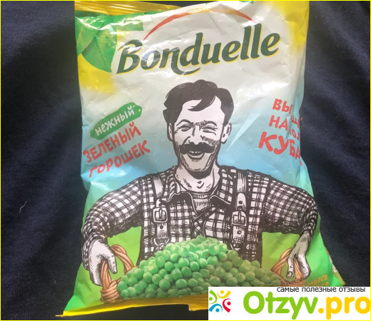 Обычно я его просто размораживаю или делаю им пюре из него. Чаще всего беру горошек другой марки, но в этот раз, так совпало, что я купила зеленый горошек «Бондюэль».