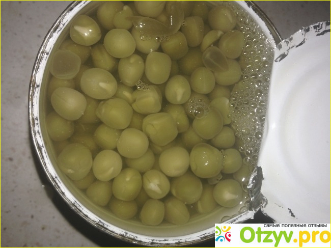 В чем же особенность этого горошка, открою баночку и буду дегустировать, как раз картофель и яйца для салата уже сварены. На баночке такой молоденький горошек нарисован, имею надежду, что подобный горошек и в банке. Не тут то было. В банке огромные горошинки, некоторые разварены.