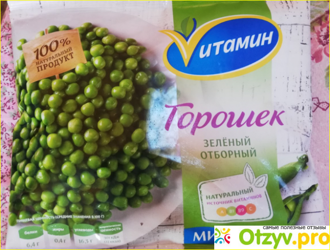 Да и упаковка показывала красивую картинку, надпись, что куплю отборный и зеленый горох, что в руки попадет 100% натурпродукт. Купила, отбила на кассе, принесла домой с другими покупками.