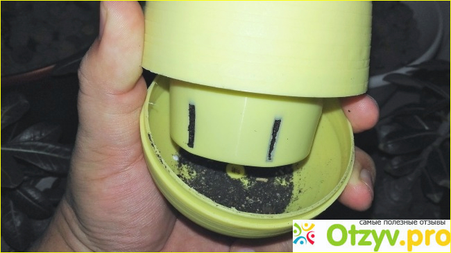 Оно разборное и излишки влаги будут копиться внизу или наоборот наливать воду в этот отсек и корни сами потянутся за водой. Внешний вид горшка напоминает керамическую и спокойно умещается в ладони. Дарить растения в подобной посуде будет вдвойне приятней.