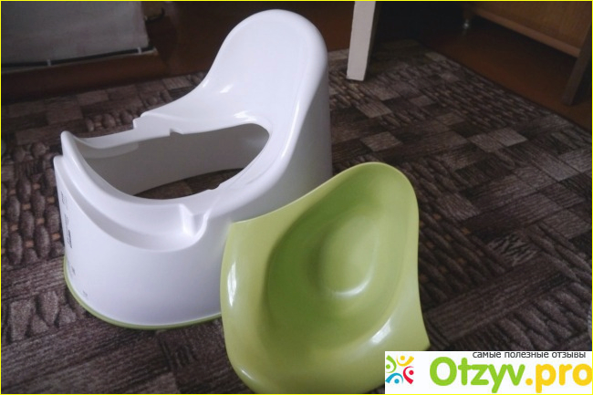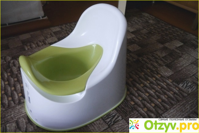 Только он очень большой (не для маленьких квартир) и стоит немалых денег. В итоге по рекомендациям купили этот горшок в Икее без примерки. И не пожалели. С маленьких обычных горшков нашему ребенку было очень тяжело вставать (только с посторонней помощью), да и садиться было низковато. Пристраивался-пристраивался и потом всё-таки плюхался. А с этим очень удобно - ребенок сразу сам уселся, и потом легко встал. Это потому, что высота посадки у этого горшка достаточно приличная. Я боялась даже, что ребенку будет высоко и неудобно, но совершенно зря. Наш годовалый малыш при росте 75-80 отлично справлялся.