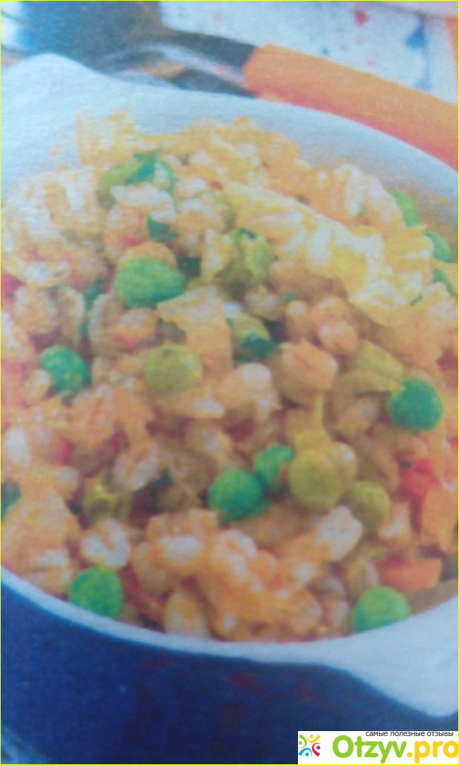 4) всыпьте в сковороду перловую крупу, неразмороженный зеленый горошек, влейте 200 милиграмм воды, приправьте солью, перцем и кумином.