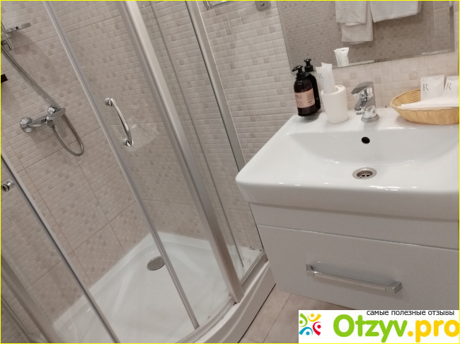 Он неуютный, обычная плитка. Санузел мне не понравился, потому что резко меняется температура воды в душевой кабине. Раковина удобная, вода не брызгает.