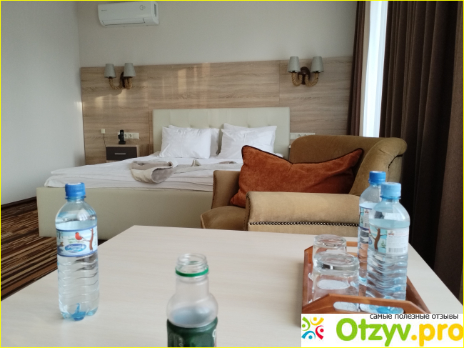 Понравилось, что каждый день предоставляют две бесплатные бутылки воды (с газом и без). В мини-баре есть алкоголь и разные напитки за дополнительную плату. Холодильник переполнен, с трудом поставила свою бутылку воды.