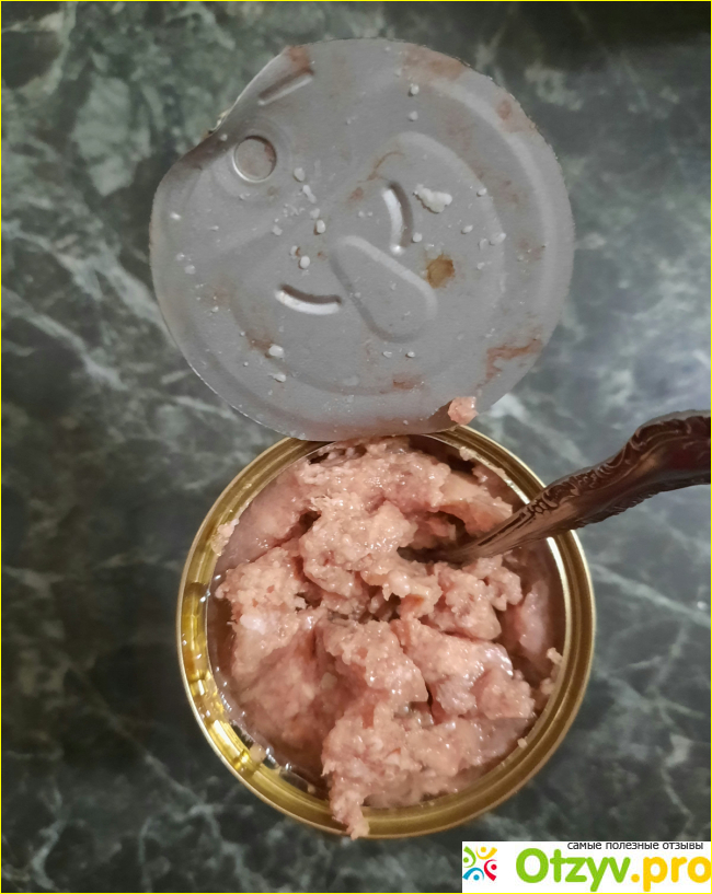 Цена баночки весом 410 гр. всего 85 рублей. Приятная согласитесь? Открываем баночку, корм приятно пахнет, и неплохой на вкус (попробовала сама).