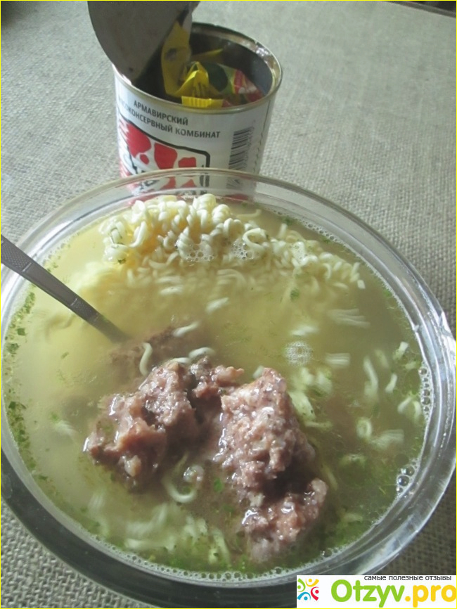 Никаких преимуществ перед другими тушенками адекватного качества (за 50-70 рублей не в счет) по сути не имеет. Можно купить армавирскую, а можно какую-то другую.