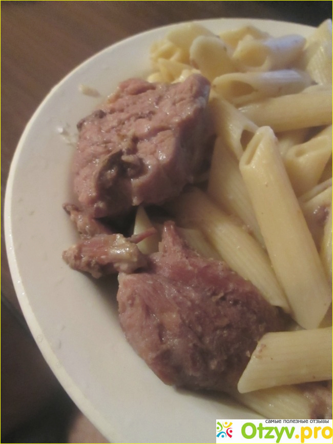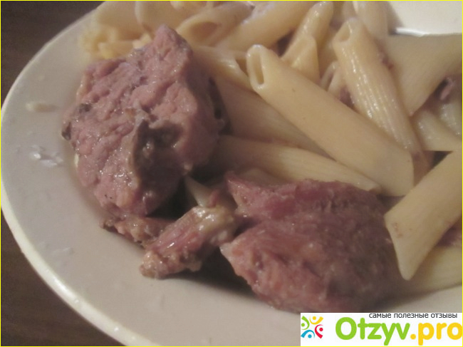 Вот куски тушенки выглядят рядом с макаронами-перьями