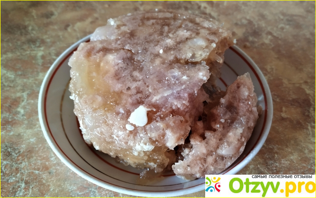 Вот так выглядит тушенка, освобожденная из банки. Такое впечатление, что измельчили смесь мясных отходов и все вместе потушили с добавлением загустителя и приправ. В итоге получилась такая масса.