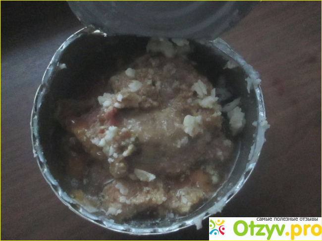 Вид банки после вскрытия, справа видно, что дата выбита изнутри , мясо закрыто жирком