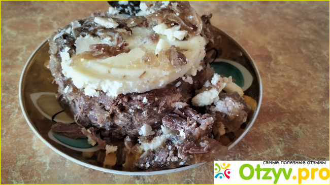 Банка была заполнена тушеным мясом так плотно, что я с трудом выложила его на блюдо. Жир оказался на дне, но так и должно быть.