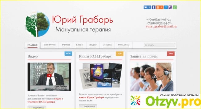 На официальном сайте есть контакты, по которым вы можете записаться на прием или заказать вышеперечисленные книги. Указывается также электронный адрес, можно написать письмо с обращением или получить консультацию. Юрий Грабарь зачастую бывает в разных городах, поэтому у многих есть шанс получить необходимое лечение всего за 1 сеанс, не покидая черты родного города.