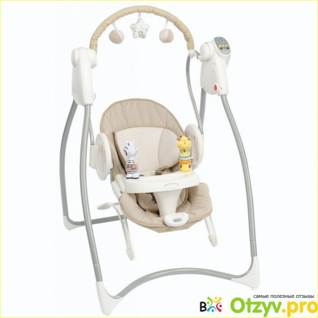 Скорость укачивания тоже разная, их аж 6. Так что как говорится на любой вкус и цвет. Места в комнате занимает очень мало! Так же эта качеля безопасна тем, что она не работает от розетки, вы можете не переживать, что случится замыкание или еще что-то, работает качеля простенько, на батарейках.