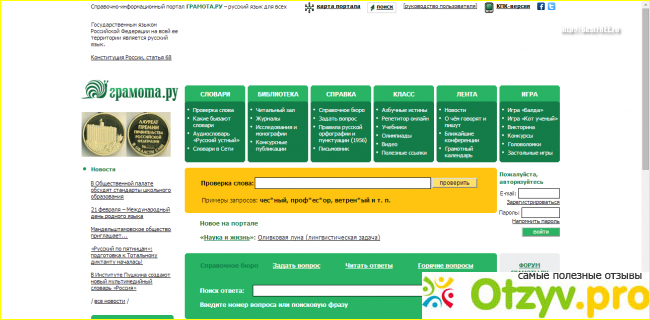 Грамота. ру является полноценным справочно-информационным порталом по русскому языку. Именно на этом сайте можно найти ответы практически все вопросы, касающиеся русского языка, в том числе и ознакомиться с научными работами от ведущих филологов, узнать последние новости мира лингвистики и с пользой провести свободное время.