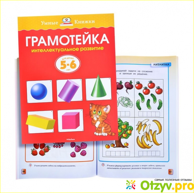 Вернемся к книге. Это пособие подготовило издательство Махаон, назывался оно Грамотейка Интеллектуальное развитие, и предназначено для детей 5-6 лет.