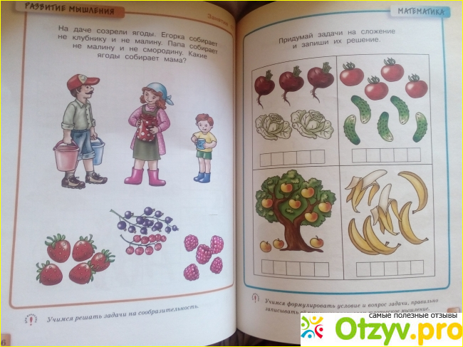 Есть более легкие, игровые задачи, а встречаются более сложные, которые родитель должен сначала объяснить, рассказать. Но ведь книга и предназначена для совместных занятий родителей и детей.