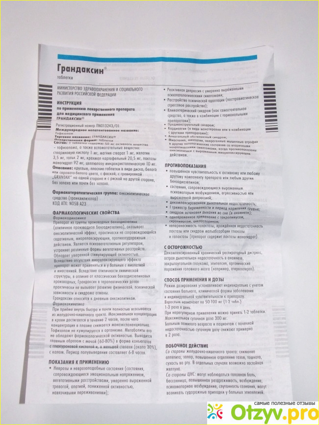 Врач дал рекомендацию купить таблетки грандаксин и принимать полный курс этого препарата.