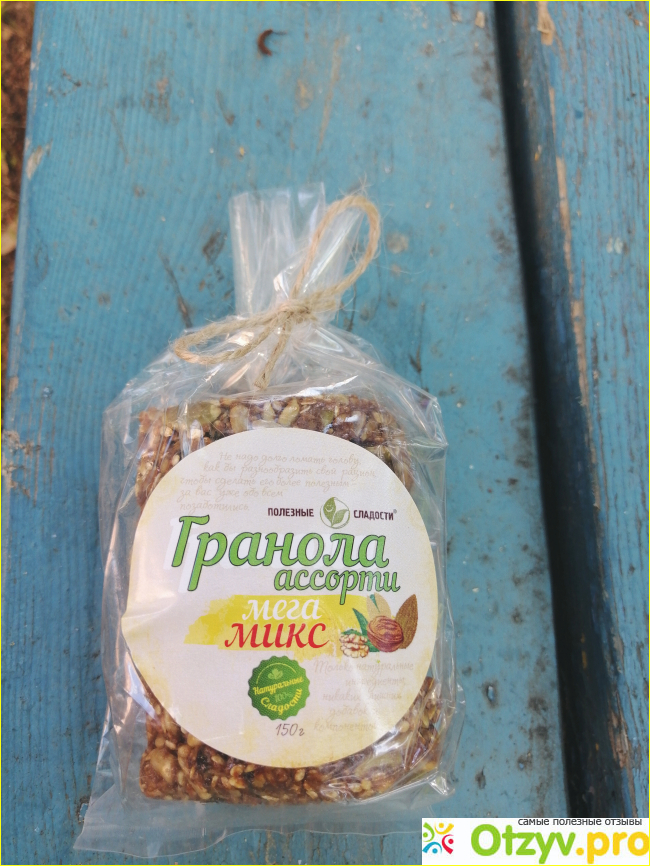 Натурально, вкусно и полезно. Гранола разделена на удобные порционные кусочки. В одной упаковке 8 кусочков. Гранола очень приятная на вкус, отлично подходит для сытного перекуса. А так же вместо десерта. Срок годности всего шесть месяцев, что говорит о натуральном составе без вредных консервантов.