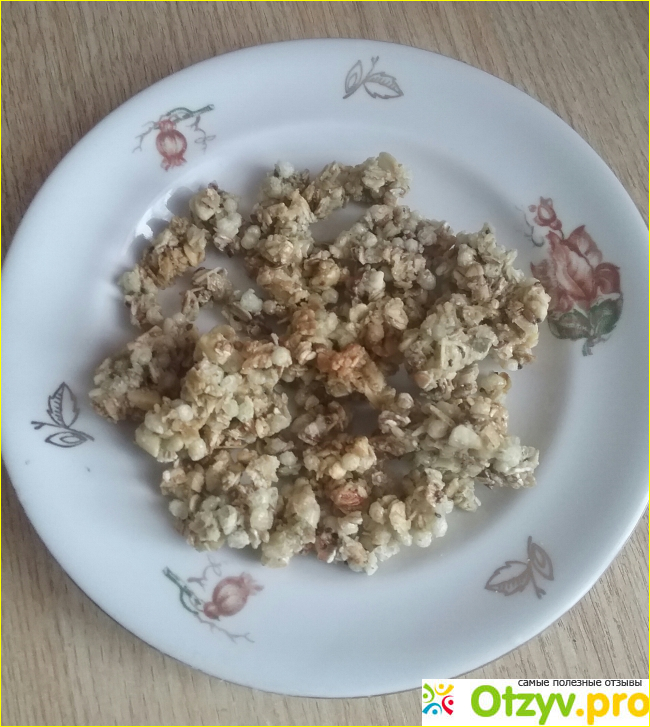 Гранола изготовлена без каких-либо красителей, усилителей вкуса, ароматизаторов и консервантов, что в настоящее время очень важно. Мне данный факт также пришелся по вкусу, так как многие продукты питания содержат в своем составе добавки Е, консерванты и другие вредные вещества. В составе готового продукта также присутствует патока, кокосовая стружка, рисовая мука и кокосовое масло, которое является источником незаменимых жирных кислот. Идеальное сочетание натуральных ягод, фруктов, цельных злаков и нескольких сортов орехов делают вкусным, питательным и полезным продуктом для перекуса и здорового завтрака, а также для тех, кто следит за своим здоровьем и лишним весом. Так как у меня сахарный диабет 2 типа и мне сладкое противопоказано по состоянию здоровья, то я для себя также открыла ореховый десерт, так как в составе отсутствует сахар.