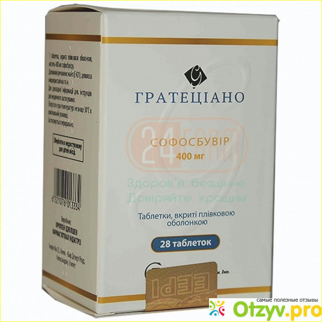 Grateziano Sofosbuvir является полным аналогом современного американского препарата Софосбувир 400 мг либо Совальди.