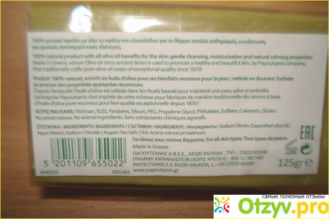 Меня это заинтересовало и я купила себе такое мыло на пробу. Оно оказалось выше всяких похвал. И теперь, когда я бываю в Греции я запасаюсь таким мылом побольше.
