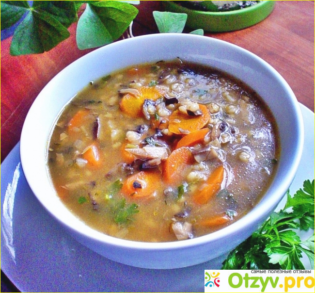 4. В конце приготовления этого блюда добавляем белые грибочки, гречку, лавровый листок.