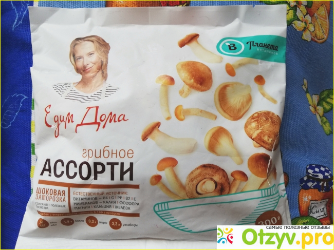 Производитель пишет про шоковую заморозку. Анонсирует состав: опята, два вида вешенок и грибы шиитаке, которые у нас в городе нигде не купишь. Я шла домой с таким предвкушением! Думала сейчас пожарю картошечки с грибочками, возьму огурчики из погреба…