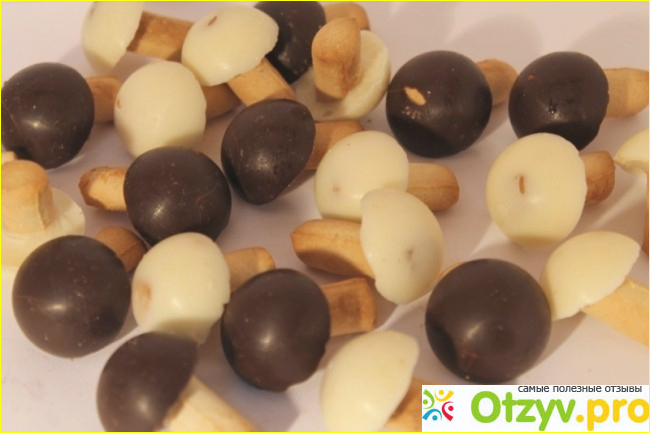 8. Далее мы будем готовить шоколадную глазурь (можно просто растопить плитку шоколада). Глазурь готовим из следующих ингредиентов: молоко, сахар, какао - порошок, масло сливочное или маргарин. Затем обмакиваем шляпки в глазури и даем им подсохнуть. Домашние шоколадные грибочки готовы. Приятного чаепития!