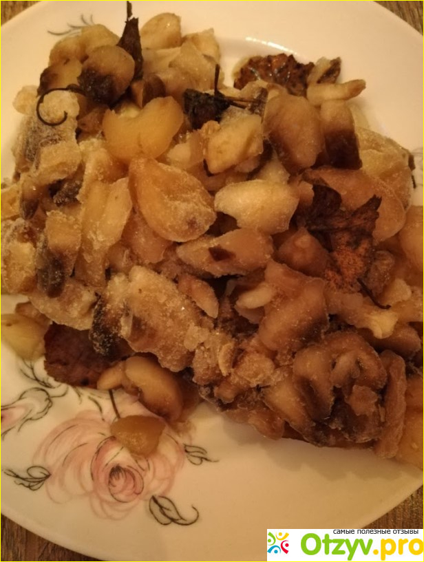 Грибы не слиплись в один большой ком. Значит, хранили их правильно. Нарезка оптимальная. Можно сварить с такой суп, пожарить или добавить в пиццу. Вкус, как у обычных свежих грибов. Запах насыщенный, особенно при жарке с лучком и картошкой)