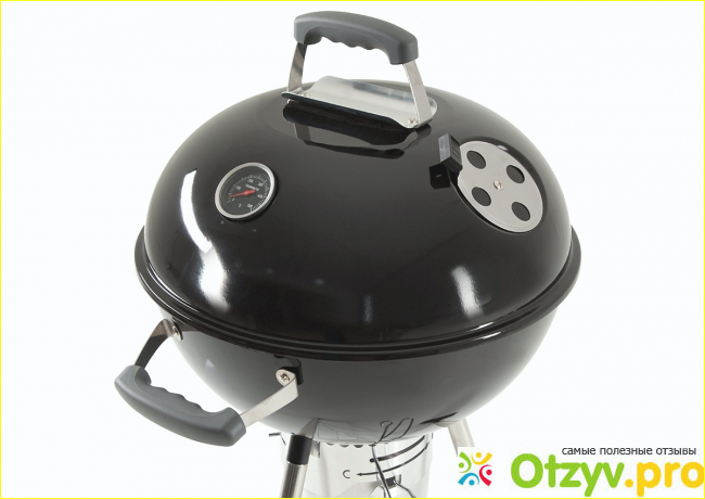 Собственно, сама жаровня устройства представляет собой округлой формы чашу, сверху устанавливается грилевая решетка. Решетки для мяса и для угля и система подвешивания – состоят из хромированной стали, что, конечно же, может защитить их от коррозии и обеспечить довольно длительный срок службы.