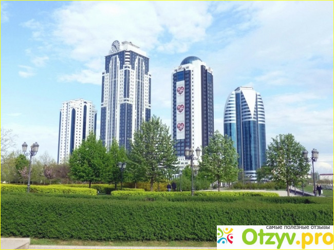 Рядом с ними парк с роскошной архитектурой и отличным ландшафтным дизайном. Первые здания комплекса Грозный - сити была построена в 2011 году, как и главная мечеть города "Сердце Чечни". Сейчас она является визитной карточкой города.