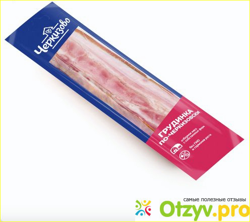 Хочу поделиться своими впечатлениями о любимом продукте, грудинке по-черкизовски. Это просто моя находка. Радует его состав: только натуральное мясо, соль, специи и натуральное копчение, никаких лишних добавок.