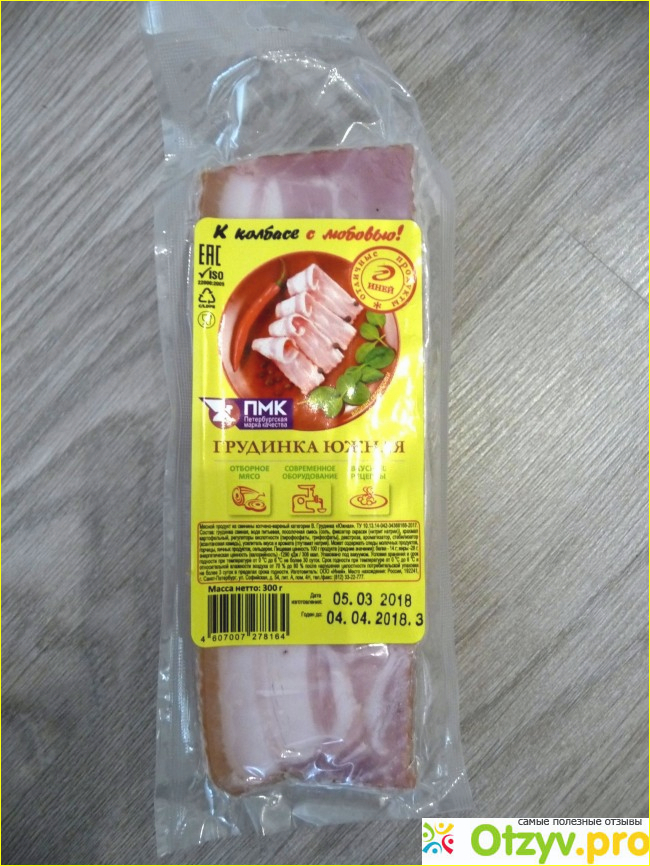 Сама грудинка очень нежная на вкус и что мне очень понравилось, она совершенно не соленная. Соль заглушает вкус мяса и таким образом невозможно определить его качество.