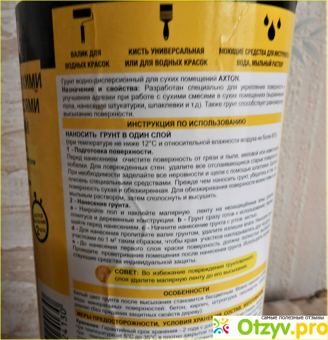 На этикетке напечатана достаточно подробная инструкция, как использовать грунт. Все предельно понятно и реально для выполнения.