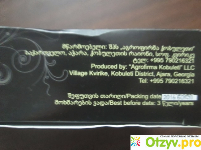 Сделано какой-то агрофирмой Кобулети в деревне Квирике. Срок годности аж три года.