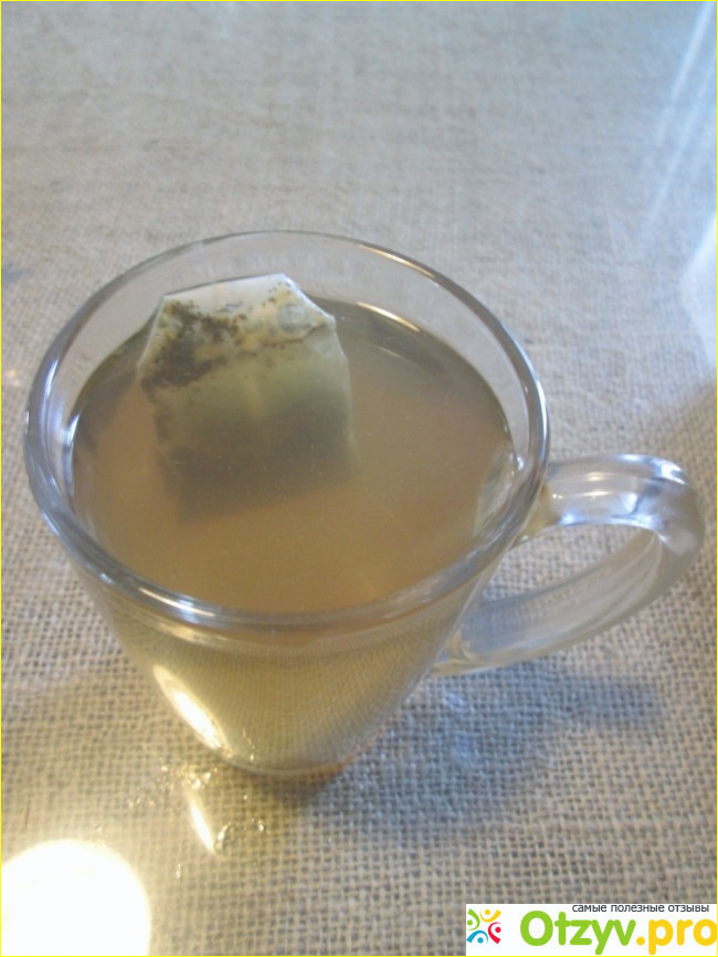 Заваривается быстро, вот чайный пакетик и оцените какой у него цвет. Типичный для зеленого чая, у черного он немного другой.