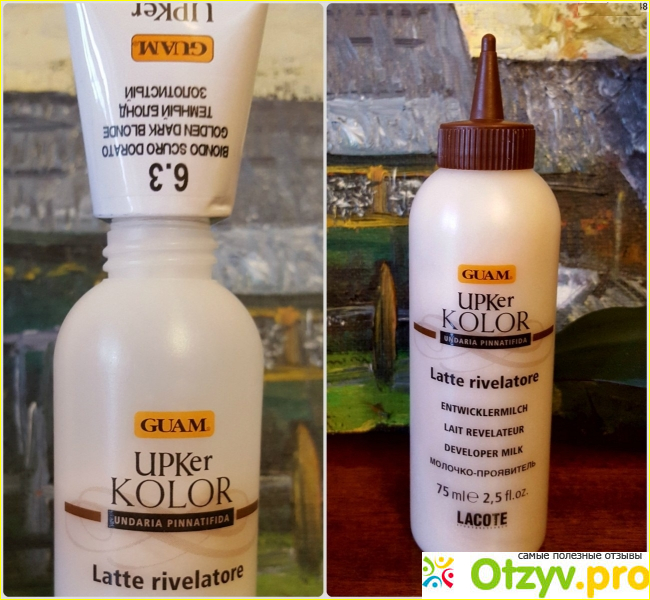 Когда я в конце концов сумела вернуть красоту волос, еще очень долго опасалась краситься. Но я не люблю свой естественный цвет, мне более к лицу быть блондинкой. Поэтому я отважилась на окрашивание. Но опять-таки, продукцией Гуам. Присмотрела себе красочку пригодного оттенка. Стоит она сравнительно недорого, я брала за восемьсот рублей.