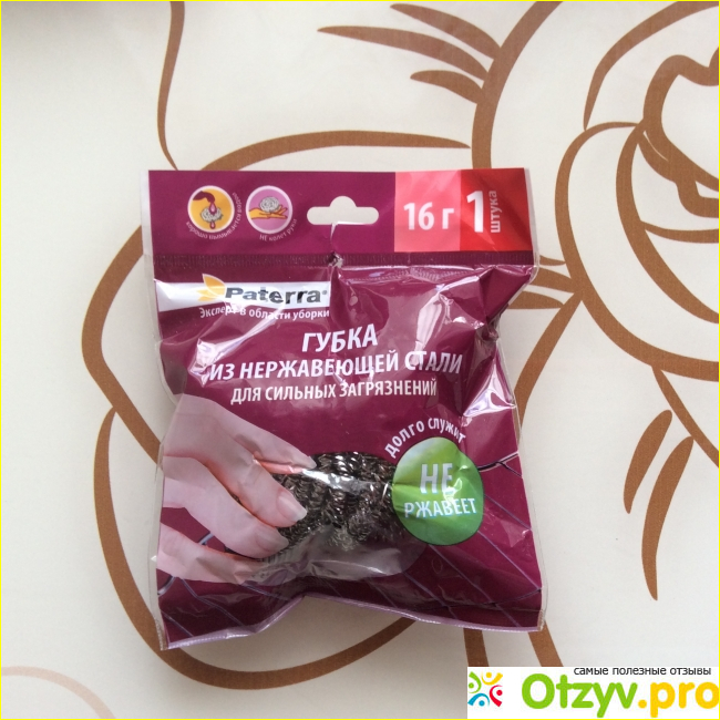 Также они хорошо себя показывают для очищения некторых металлических предметов, но при этом стоит учитывать, что такие губки могут оставлять микро трещины на любой поверхности, что несомненно портит внешний вид предмета. В своем сегодняшнем отзыве я хочу рассказать про губки из нержавеющей стали от марки «Paterra», которая понравилась мне своим качеством, но к сожалению не обещанной производителем долговечностью.