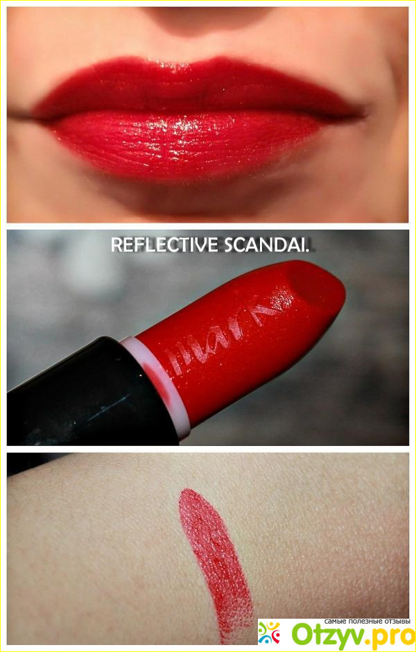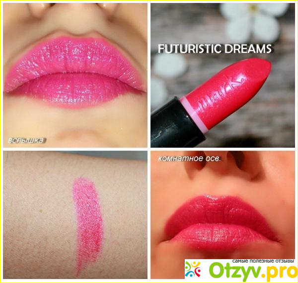 Достоинства: ?эффектная презентация; ?увлажняет губы, не сушит; ?на губах почти не ощутима, комфортна; ?плотный оттенок без пропусков; ?бриллиантовое мерцание за счет шиммера; ?устойчива в течение дня (частично съедается за обедом); ?цена (по акции).