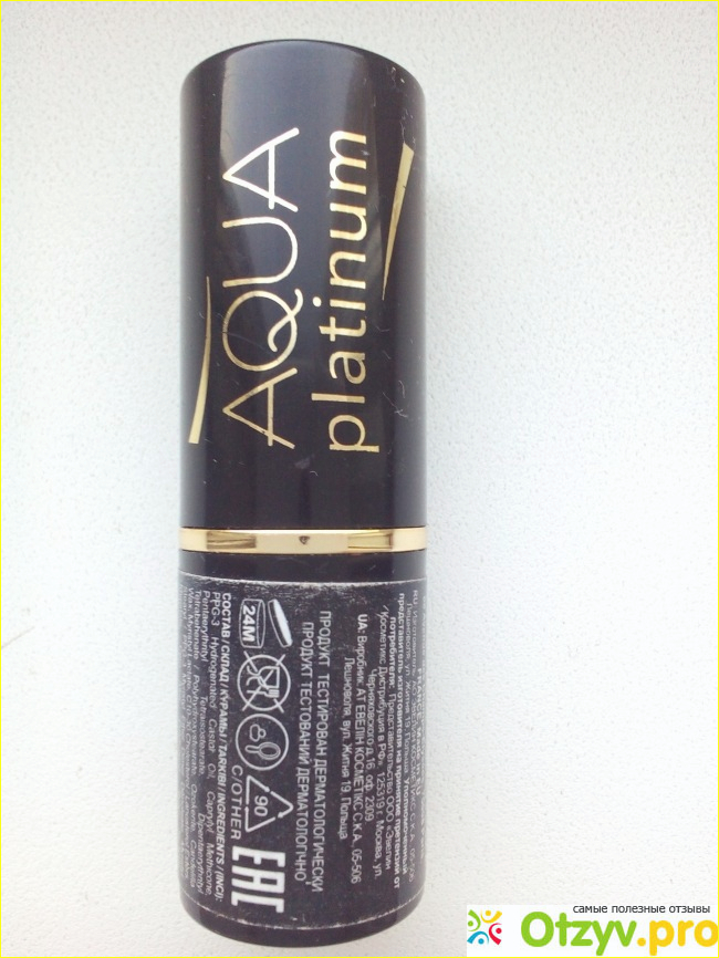 Помада Eveline Aqua Platinum не сушит губы и не течет. Никаких аллергических реакций или раздражений от этой помады нет, хотя состав какой-то длинный и, конечно же, мало натурального в составе. Конечно, она отпечатывается на кружке, зато она долго держится на губах. Всякие мелкие минусы, свойственные почти всем помадам, я даже не считаю минусами. Помада просто супер. Наверное, любая девушка/женщина сможет подобрать себе свой оттенок помады. Рекомендую.