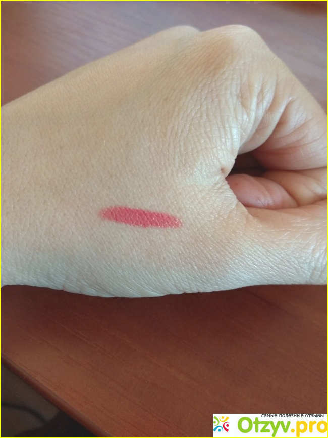 помада суховата, однако хорошо пигментирована, она остаётся на губах, не плывет, однако и подсушивание их, именно летом она 'удобна' в носке, потому как не течёт.