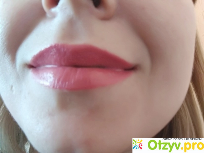 На каталожных фото создаётся эффект влажных губ, однако я такого не заметила, его скорее даёт Сатиновая губная помада (из другой серии), а эта помада глянцевая, но без эффекта влажных губ.