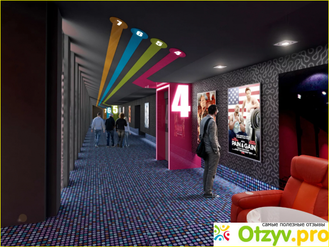 1. Дизайн Гудвин синема. Начнем с него. Когда я зашла внутрь, я была поражена. Обстановка яркая, кругом мигают вспышки света. Я пришла в восторг, как маленькая девочка. В моем детстве такого не было! На потолке стильные разноцветные полосы, которые выполнены в общем стиле. Если ориентироваться по ним, вы с легкостью доберетесь до нужного зала, в котором будет идти выбранный фильм. В моем городе таких необычных кинотеатров еще нет. Да, они комфортные и современные, но все вполне стандартно.