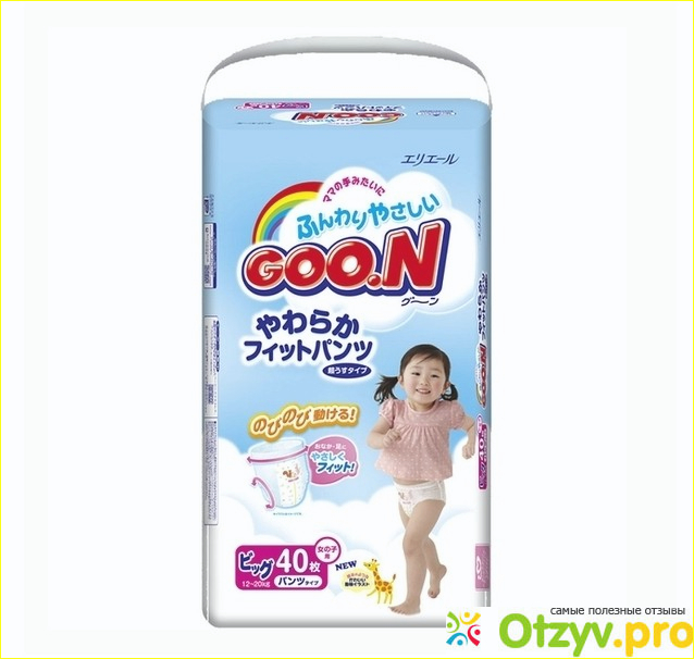 Я пробовала просто подгузники фирмы goon, но они мне не очень понравились так как протекали ночью. Но когда я приехала к подруге в гости и увидела её годовалую дочь в этих подгузниках, удивилась. Оказывается трусики - подгузники Goon для девочек 12 - 20 кг очень хорошего качества! Производятся эти трусики в японии, а японцы очень трепетно относятся к своим детям и делают для них качественные продукты.