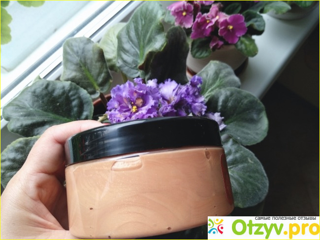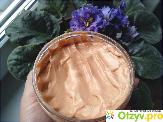 На фото видно что маска достаточно густая и плотная по структуре, на мои средней длины волосы , достаточно столовой ложки. Масса хорошо распределяется по волосам, не течет. Смывается под душем достаточно быстро, оставляя устойчивый аромат на волосах. Для меня маска пахнет пряностями - мне нравится и запах не раздражает.