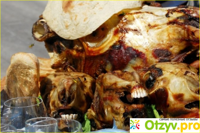 Настало время ужина, я побывал в местном ресторанчике. Меня тут здорово обслужили, посчитали почетным гостем, наверное это принято не только в Гюмри, люди тут действительно классные и это надо признать. Немного перекусил и направился в одно очень интересное место. Побывал в старинном доме, который хозяин отстроил своими руками. Что не вещь, то произведение искусства. Удивительный источник водоснабжения у хозяина дома был, нажав на камень, отключалась подача воды. Вот такой вот удивительный родник, также придуманный своей головой. Но не об этом, сам хозяин приготовил местное традиционное блюдо под названием Кялла. Его очень любят в Северной Армении и готовят достаточно часто. Кялла готовится из говяжьей или бараньей головы, ее сначала слегка нагревают, а потом кладут в печь на 8-9 часов. Как только блюдо приготовилось, гостей зовут к столу. В этот раз незваным гостем оказался я. Хозяин дома одним движением руки раздвинул пасть баранью и я мог лицезреть с одной стороны не очень приятную картину, а с другой стороны - попробовав одну лишь щеку баранью я получил максимум удовольствия. Действительно вкусное блюдо, ради которого уже можно приехать в Гюмри.