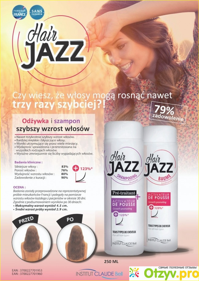 Hair jazz - это линия специальных ухаживающих средств для волос, которые помогают улучшить рост волос, а так же препятствовать их выпадению. Линия данных средств является достаточно популярной, и даже не в счет своей эффективности, а в счет своего уникального и натурального состава. Состав каждого из средств данной линии, не включает в свой список химикатов, а только благородные для волос, кожи и здоровья компоненты. Hair jazz включает в себя три средства, это специальный шампунь, бальзам, а так же маска для волос. Используя сразу все три средства, получается действительно добиться успеха и сделать волосы здоровыми и красивыми.