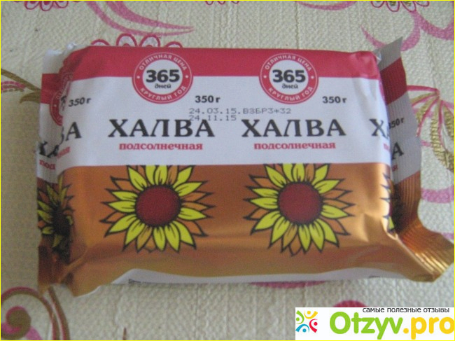 Халва подсолнечная торговой марки "365 дней" была расфасована в оберточную бумагу, без каких либо подложек, поддонов, на которой был изображен подсолнечник. На упаковке имеется отметка о дате изготовления халвы 24.03.2015 года. Срок хранения халвы 8 месяцев со дня ее изготовления. Заканчивается срок годности халвы 24.11.2015 года.