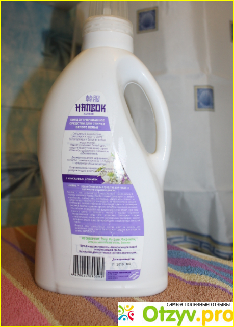 Раньше мне никогда не приходило в голову покупать отдельное средство для белых вещей, но после того, как было испорчено много нижнего белого белья, я решилась на покупку. Приобрела в интернет-магазине концентрированное средство для стирки белого белья Ханбок.