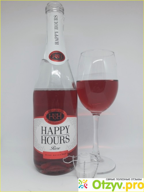 Винный напиток Happy hours частенько можно встретить в магазине Магнит, последнее время такой напиток начал появляться и в других. Спрос конечно на него есть. Вполне приятный вкус и аромат. Стоимость довольно-таки бюджетная. Но стоит обратить внимание, что это не розовое шампанское. а просто газированный винный напиток. Особого какого-то вреда здоровью не будет при умеренном употребление. Но стоит отметить, что в составе присутствуют красители. Да и пластиковая пробка как-то не особо внушает доверия. Бутылка прозрачная и сквозь нее просвечивается красивый розовый цвет алкогольного напитка.